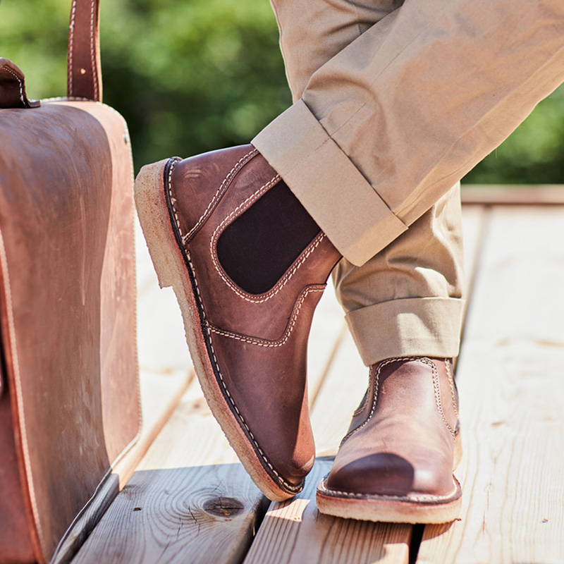 Støvlen er en klassisk chelsea støvle med elastisk i siderne, så den er nem at tage på, og læderet former sig efter foden over tid. Materialerne er fremstillet med fokus på bæredygtighed og lang holdbarhed, og sålen kan udskiftes, så støvlen kan bruges i mange år.